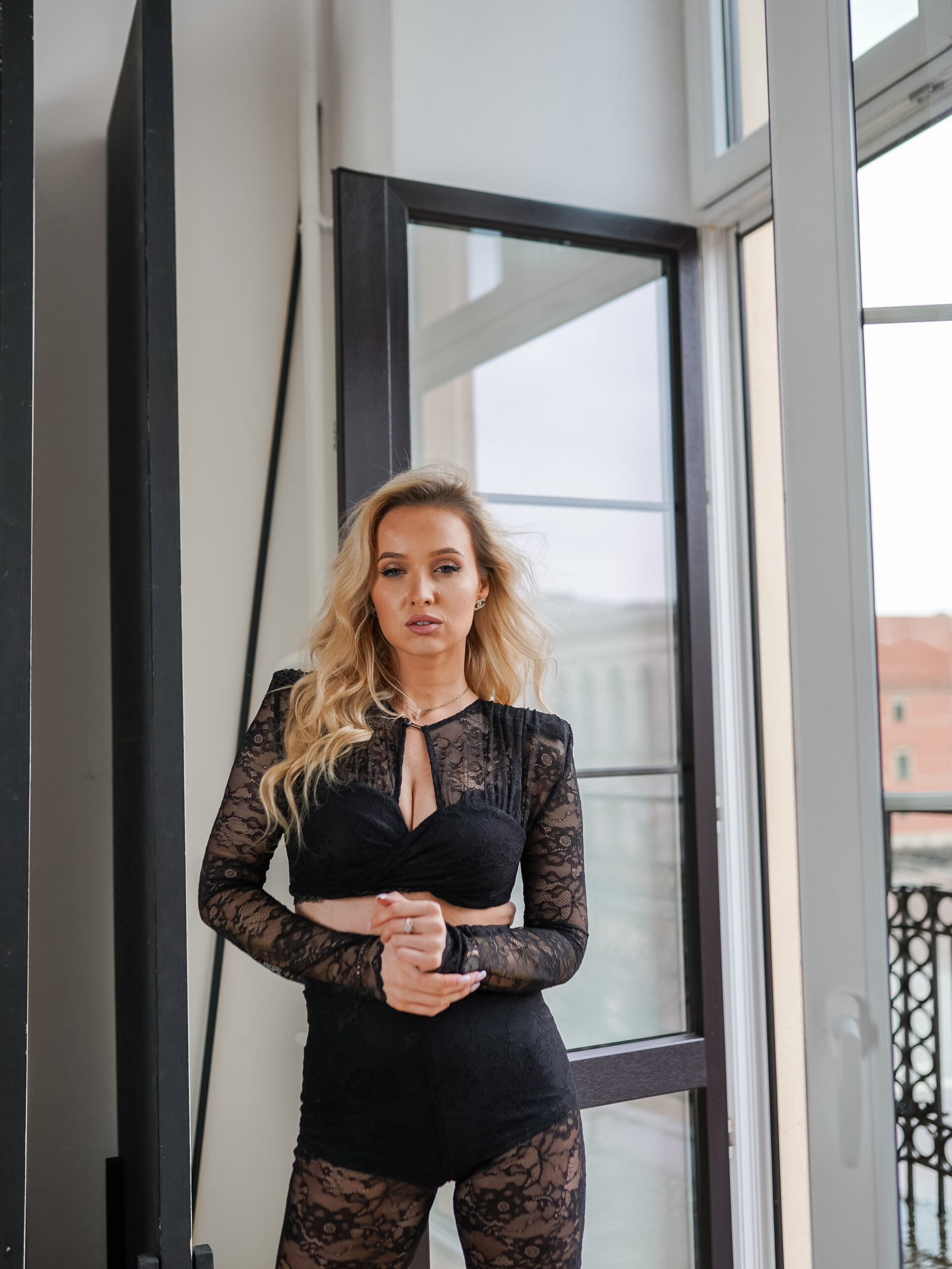 Top koronkowe z wysokim stanem, elastyczny, z dekoltem. Zapinany na guzik.